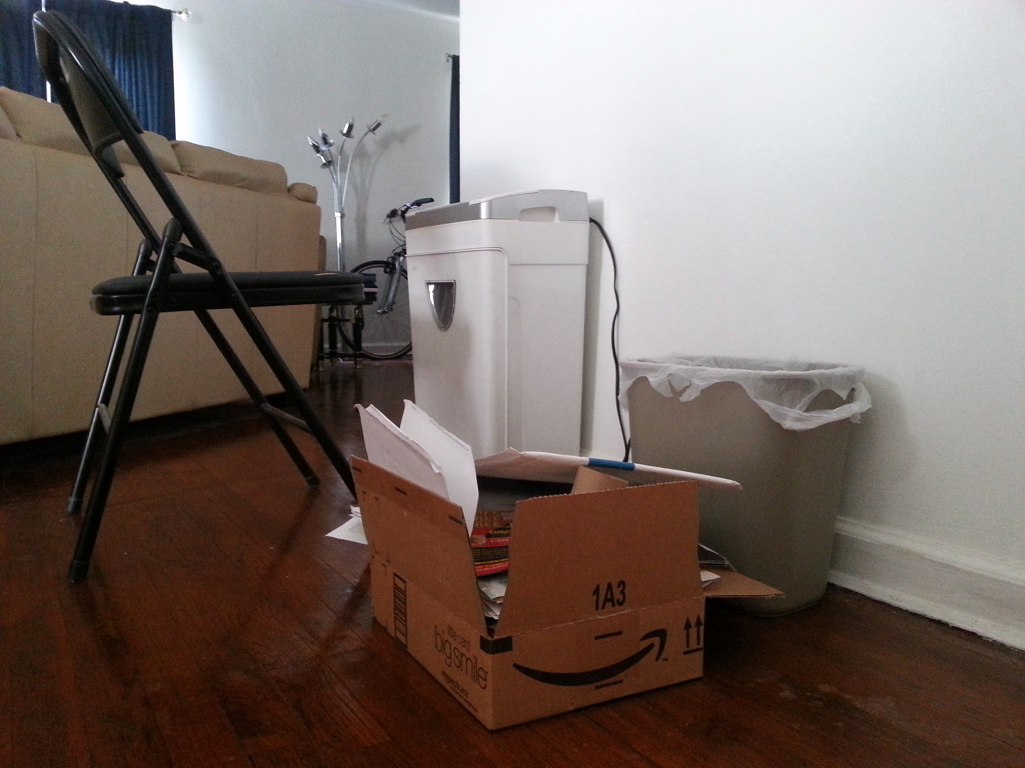 My next focus was to organize and shred my sister Liza’s old mail. Like me, Liza is a pack rat. The mail had stacked up in places. It was even climbing up the stairs. I spent most of June taking down the piles. The stairs were cleaned up. I organized all important documents in folders. I even set up my station next to the shredder.