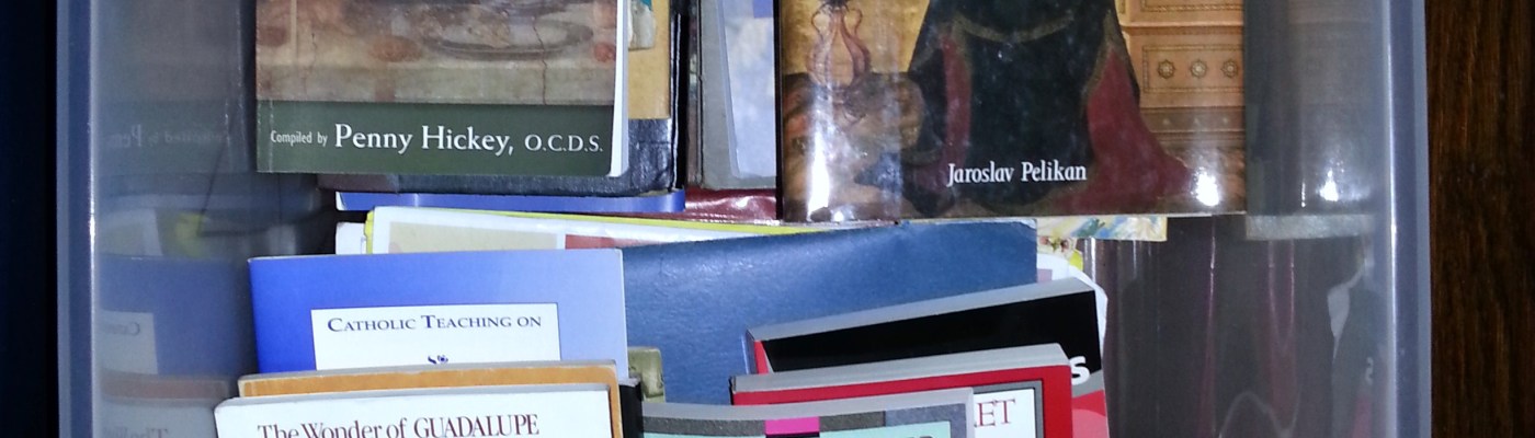 • “Bread of Heaven” (Penny Hickey, O.C.D.S.): This is a good collection of writings on the Eucharist from a variety of Carmelites, including John of the Cross and Teresa of Avila.  The Marian references to the Eucharist have put my devotion to Mary in perspective.  I decided to keep this book instead of returning it to the pile.