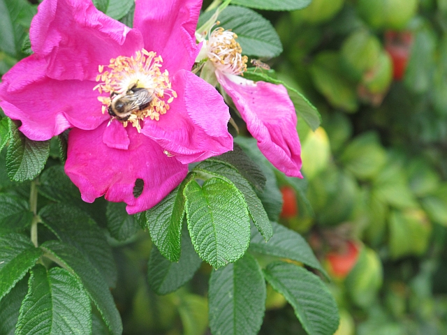 Sometimes, even small things intrigue me. For example, a bee in this flower along the road caught my attention.