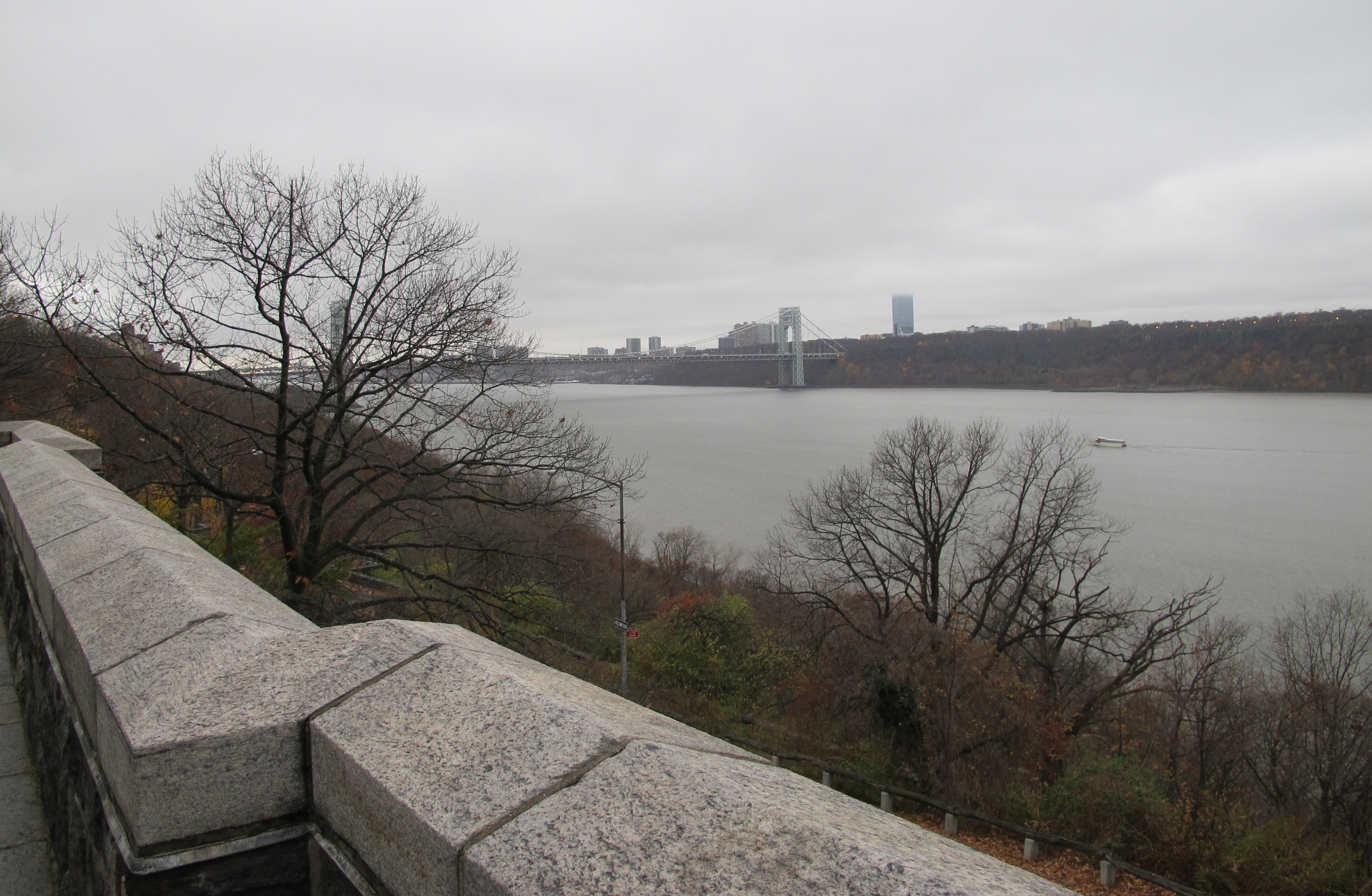 A view of the George Washington Bridge from the East Terrace of the Cloisters in Fort Tyron Park in New York on Nov. 28, 2015.