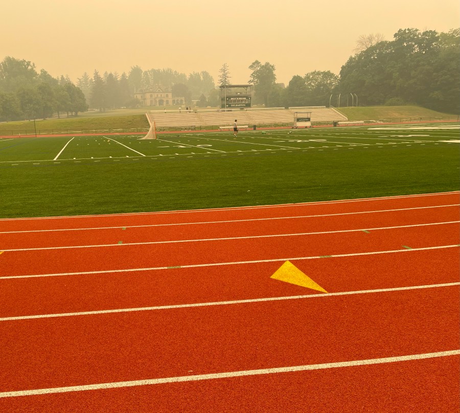 On Wednesday, June 7, 2023, I walked around the track at Delbarton near St. Mary’s Abbey. The sky was filled with smoke from the Canadian wildfires.