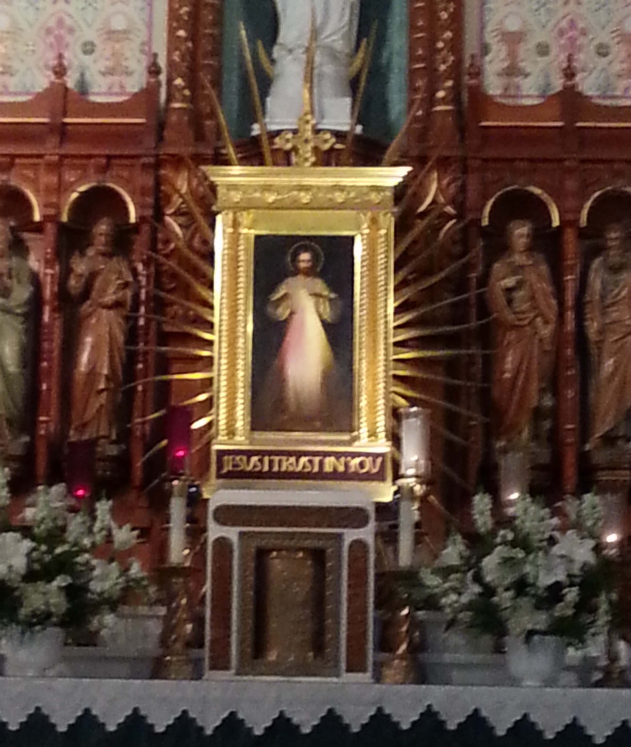 The image of the Divine Mercy above the tabernacle in the National Shrine of the Divine Mercy.